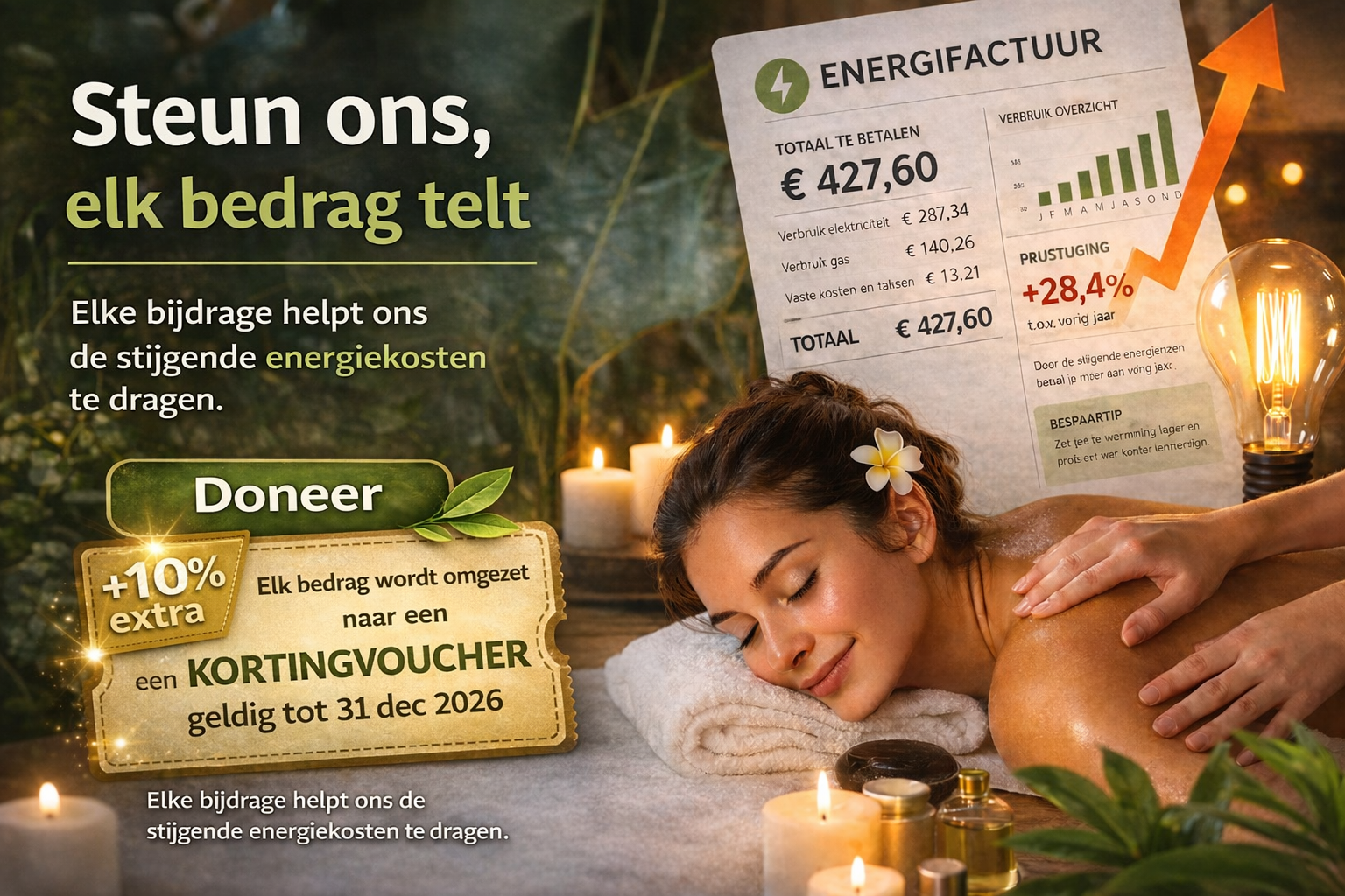 Zo help je ons de stijgende energiekosten op te vangen, én geniet jij later van een heerlijk moment van ontspanning.